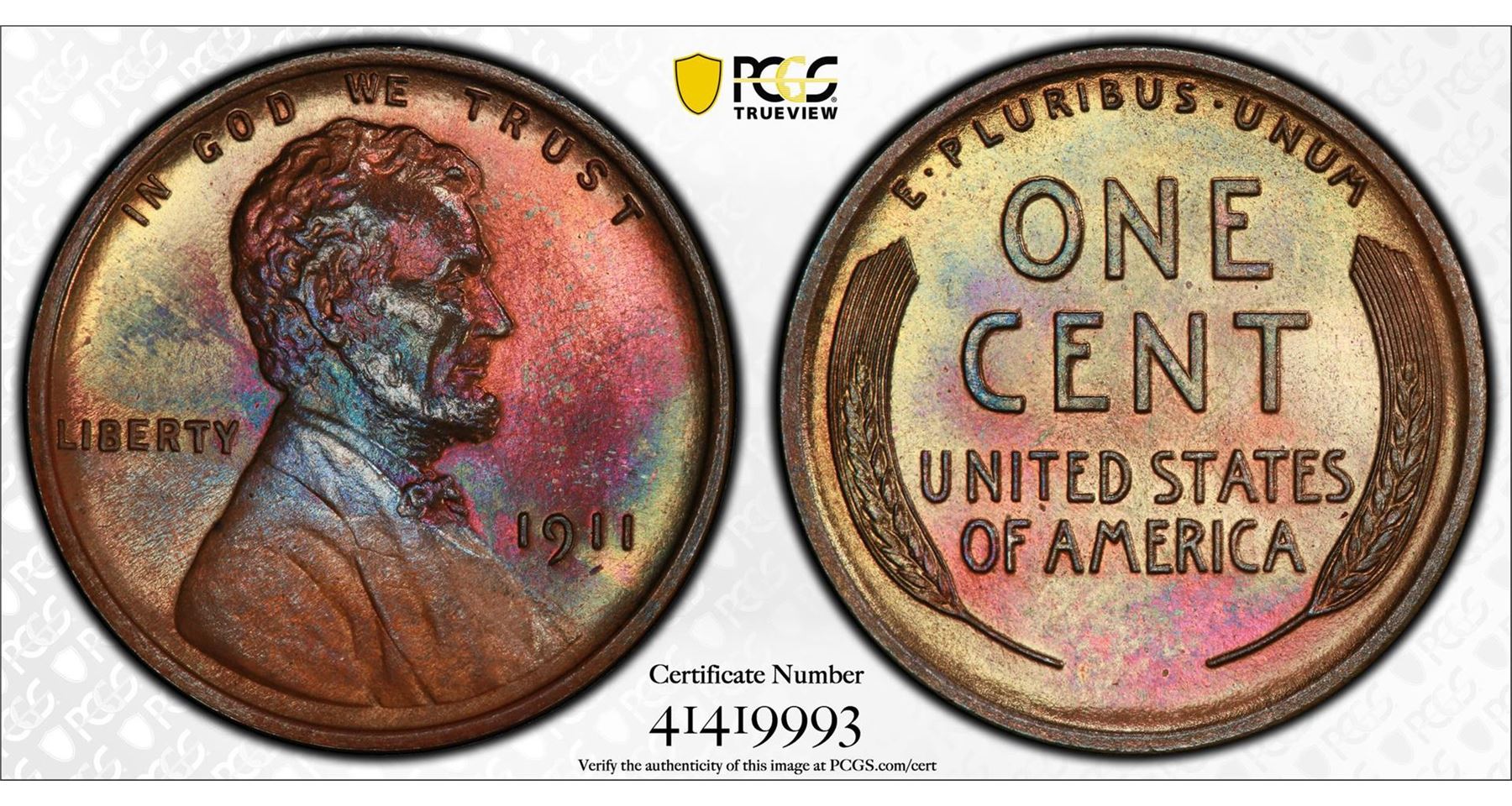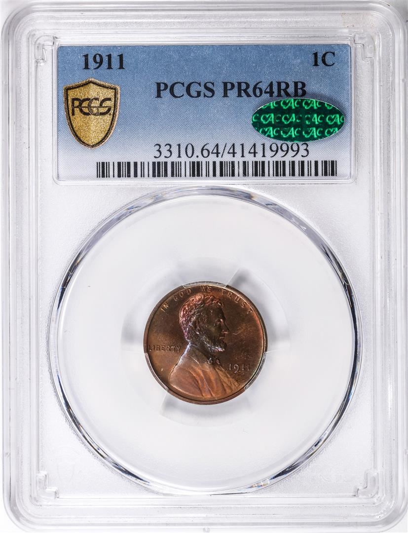 One 1911 Proof Lincoln Wheat Cent Coin PCGS PR64RB CAC Amazing Toning. PCGS Graded.