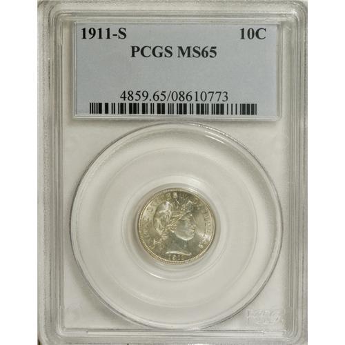 1911-S 10C MS65 PCGS. This highly lustrous Gem has ple