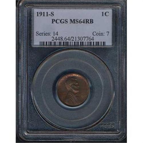 1911-S 1C Lincoln Cent PCGS MS64RB