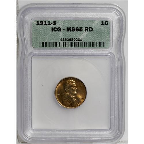 <B>1911-S<1C> MS65 Red ICG.</B></I> A meticulously struck Gem with luminous olive-gold and rose fields. This satiny and essentially unabraded piece has a few tiny toning flecks, but is otherwise exceptional. A scarce early branch mint issue.