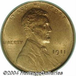 <B>1911-S<1C> MS65 Red PCGS.</B></I> The '11-S has always been a scarce date in all grades. Fully red Gems may be found with a bit of searching. The example we offer in this lot displays nicely struck design elements, with sharp detail showing in Lincoln's hair and beard, and in the wheat stalks. Lustrous surfaces are overlain by pale orange patina with faint reddish undertones. A few tiny flecks scattered about do not detract in the least. Population: 53 in 65, 11 finer (7/04). <BR><BR><B>Important notice:</B> Heritage usually auctions material at the rate of 200-250 lots per hour. On some occasions eBay Live bid software or the Internet may not be able to keep up with the pace of the auction. We recommend placing a realistic absentee bid now as insurance to avoid disappointment. Occasionally the auctioneer may eliminate or reject an eBay Live bid, and the auctioneer may also reopen a lot after the close of the eBay live bidding (usually because we missed an audience bid), and may reject your bid even if it shows you as the winning bidder. By bidding via eBay Live, you agree that Heritage may award the lot to another bidder at its sole discretion under the circumstances described above or any other reasonable circumstances. Since eBay bids are not shown to us until we open the lot on the floor, we treat those bids just like floor bids. In most cases the floor responds before the eBay bid is presented to us, due to Internet lag time, so for consistency we have made it a policy that floor bids are always considered first over tie eBay live bids. Also please note that all Heritage lots purchased through eBay Live carry a 20% Buyer's Premium. Please make sure you read the Terms and Conditions before you bid. </span></font></tr></table></td></tr></table>