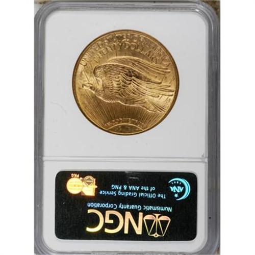 <B>1911-S $20 MS63 NGC.</B></I> NGC Census: (1570/1550). PCGS Population (902/1450). Mintage: 775,750. Numismedia Wsl. Price for NGC/PCGS coin in MS63: $855. (#9159)<BR><BR><B>Coin Engraver:</B> Augustus Saint-Gaudens<BR><BR><b>Shipping:</b> Coins & Currency (<a target="_blank" href="http://www.heritageauctions.com/common/shipping.php">view shipping information</a>)