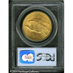 1911-S $20 MS63 PCGS. An original and lustrous Dou <B>1911-S $20 MS63 PCGS.</B></I> An original and lustrous Double Eagle that is crisply struck on Liberty's face. A moderate mark below the eagle's breast provides the only noticeable contact. <BR><BR><B>Important notice:</B> Heritage usually auctions material at the rate of 200-250 lots per hour. On some occasions eBay Live bid software or the Internet may not be able to keep up with the pace of the auction. We recommend placing a realistic absentee bid now as insurance to avoid disappointment. Occasionally the auctioneer may eliminate or reject an eBay Live bid, and the auctioneer may also reopen a lot after the close of the eBay live bidding (usually because we missed an audience bid), and may reject your bid even if it shows you as the winning bidder. By bidding via eBay Live, you agree that Heritage may award the lot to another bidder at its sole discretion under the circumstances described above or any other reasonable circumstances. Since eBay bids are not shown to us until we open the lot on the floor, we treat those bids just like floor bids. In most cases the floor responds before the eBay bid is presented to us, due to Internet lag time, so for consistency we have made it a policy that floor bids are always considered first over tie eBay live bids. Also please note that all Heritage lots purchased through eBay Live carry a 20% Buyer's Premium. Please make sure you read the Terms and Conditions before you bid. This lot is being auctioned in conjunction with a live floor auction by Heritage Galleries & Auctioneers. All final auction and invoice information will be supplied by Heritage Galleries & Auctioneers, and all other information should be considered preliminary. Lot:7127