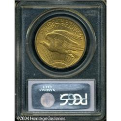 1911-S $20 MS63 PCGS. Deep peach-gold color occupi <B>1911-S $20 MS63 PCGS.</B></I> Deep peach-gold color occupies minimally abraded surfaces. Nice definition is seen in the design elements. <BR><BR><B>Important notice:</B> Heritage usually auctions material at the rate of 200-250 lots per hour. On some occasions eBay Live bid software or the Internet may not be able to keep up with the pace of the auction. We recommend placing a realistic absentee bid now as insurance to avoid disappointment. Occasionally the auctioneer may eliminate or reject an eBay Live bid, and the auctioneer may also reopen a lot after the close of the eBay live bidding (usually because we missed an audience bid), and may reject your bid even if it shows you as the winning bidder. By bidding via eBay Live, you agree that Heritage may award the lot to another bidder at its sole discretion under the circumstances described above or any other reasonable circumstances. Since eBay bids are not shown to us until we open the lot on the floor, we treat those bids just like floor bids. In most cases the floor responds before the eBay bid is presented to us, due to Internet lag time, so for consistency we have made it a policy that floor bids are always considered first over tie eBay live bids. Also please note that all Heritage lots purchased through eBay Live carry a 20% Buyer's Premium. Please make sure you read the Terms and Conditions before you bid. This lot is being auctioned in conjunction with a live floor auction by Heritage Galleries & Auctioneers. All final auction and invoice information will be supplied by Heritage Galleries & Auctioneers, and all other information should be considered preliminary. Lot:7126