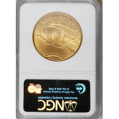<B>1911-S $20 MS64 NGC.</B></I> Boldly struck with rich satin luster and alluring golden-rose toning across each side. A few small, scattered marks limit the grade. Some of the sun's rays on the right side of the obverse are doubled. <BR><BR><B>Coin Engraver:</B> Augustus Saint-Gaudens<BR><BR><b>Shipping:</b> Coins & Currency (<a target="_blank" href="http://www.heritageauctions.com/common/shipping.php">view shipping information</a>)