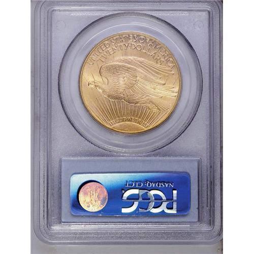<B>1911-S<$20> MS64 PCGS.</B></I> A wheat-gold example, nicely struck, with traces of emerald at the obverse periphery. This lustrous near-Gem has tiny marks that preclude Gem status.
