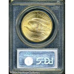 1911-S $20 MS64 PCGS. An exceedingly bright, lustr <B>1911-S $20 MS64 PCGS.</B></I> An exceedingly bright, lustrous example with rich orange-gold coloration and very few surface marks. A grease stain (as struck) in the right obverse field is slightly distracting, and may have influenced the grade of the piece. <BR><BR><B>Important notice:</B> Heritage usually auctions material at the rate of 200-250 lots per hour. On some occasions eBay Live bid software or the Internet may not be able to keep up with the pace of the auction. We recommend placing a realistic absentee bid now as insurance to avoid disappointment. Occasionally the auctioneer may eliminate or reject an eBay Live bid, and the auctioneer may also reopen a lot after the close of the eBay live bidding (usually because we missed an audience bid), and may reject your bid even if it shows you as the winning bidder. By bidding via eBay Live, you agree that Heritage may award the lot to another bidder at its sole discretion under the circumstances described above or any other reasonable circumstances. Since eBay bids are not shown to us until we open the lot on the floor, we treat those bids just like floor bids. In most cases the floor responds before the eBay bid is presented to us, due to Internet lag time, so for consistency we have made it a policy that floor bids are always considered first over tie eBay live bids. Also please note that all Heritage lots purchased through eBay Live carry a 20% Buyer's Premium. Please make sure you read the Terms and Conditions before you bid. This lot is being auctioned in conjunction with a live floor auction by Heritage Galleries & Auctioneers. All final auction and invoice information will be supplied by Heritage Galleries & Auctioneers, and all other information should be considered preliminary. Lot:7128