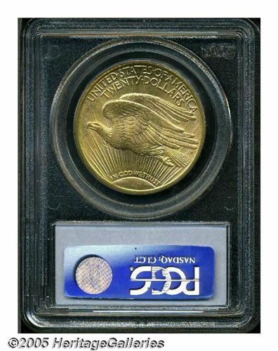 <B>1911-S<$20> MS64 PCGS.</B></I> Sharply struck with bright, semi-prooflike surfaces that have a distinctly matte-like texture in the fields, on both obverse and reverse. A handful of small contact marks, on Liberty's left (facing) leg, and a moderate blemish in the lower reverse field, just below the eagle's breast, are the grade-limiting factors.