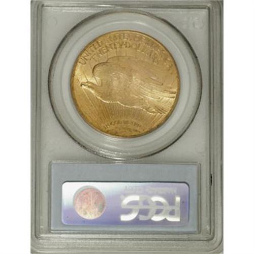 <B>1911-S $20 MS64 PCGS.</B></I> The 1911-S is a readily available early Saint-Gaudens date that usually is found highly attractive, and the present piece is no exception, with fine grain surfaces that vary in color from yellow-gold to reddish. The strike is bold, with Liberty's right (facing) leg and the Capitol building well brought up. <BR><BR><B>Coin Engraver:</B> Augustus Saint-Gaudens<BR><BR><b>Shipping:</b> Coins & Currency (<a target="_blank" href="http://www.heritageauctions.com/common/shipping.php">view shipping information</a>)