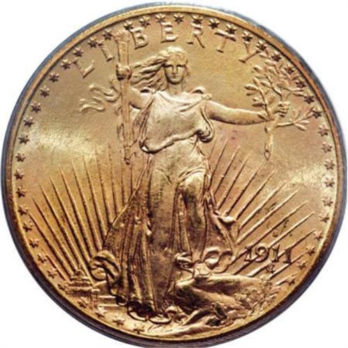 <B>1911-S $20 MS65 PCGS.</B></I> The softly lustrous yellow-orange surfaces of this attractive Gem have faint elements of sun-gold in the fields. The central devices exhibit strong detail, and the overall eye appeal is strong. While the 1911-S is one of the more available Saint-Gaudens issues, finding an attractive piece can take time, and anything finer is a condition rarity; PCGS has graded just 23 such coins (8/07).<BR><BR><B>Coin Engraver:</B> Augustus Saint-Gaudens<BR><BR><b>Shipping:</b> Coins & Currency (<a target="_blank" href="http://www.heritageauctions.com/common/shipping.php">view shipping information</a>)