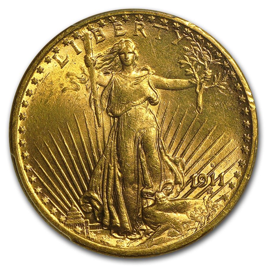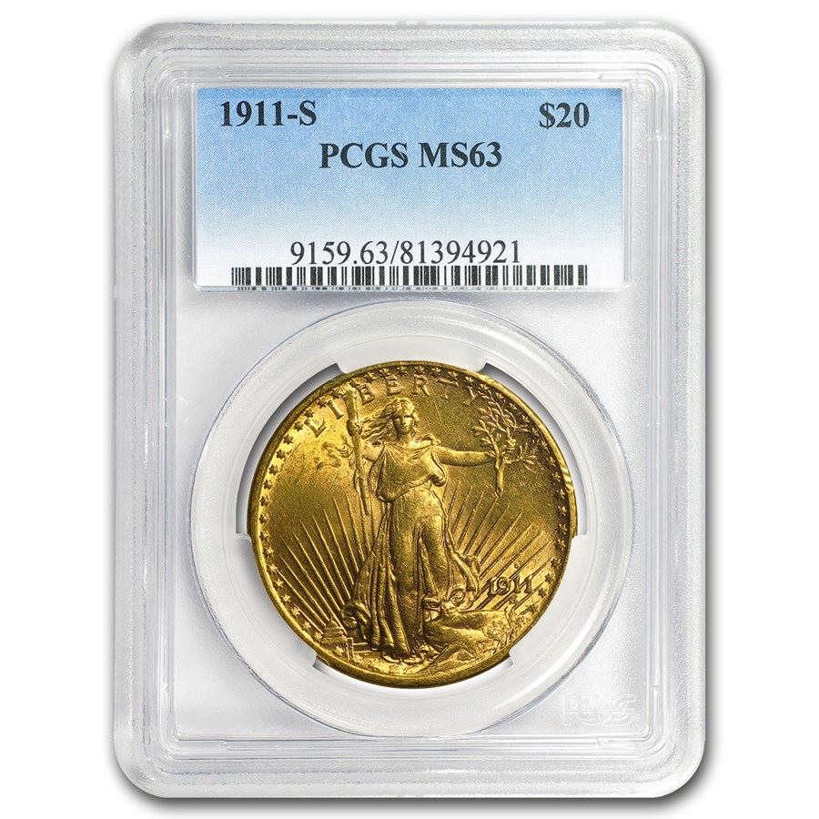 1911-S $20 Saint-Gaudens Gold Double Eagle MS-63 PCGS