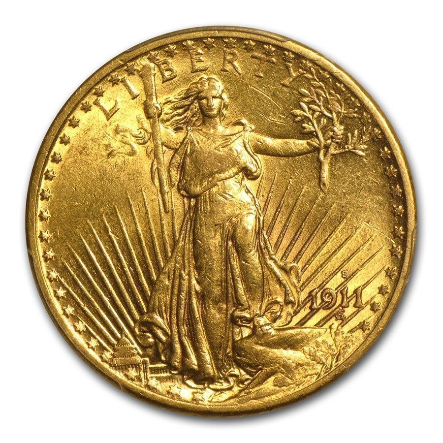 1911-S $20 St. Gaudens Gold Double Eagle AU-58 PCGS (CAC)