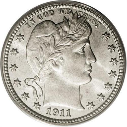 <B>1911-S 25C MS66 PCGS.</B></I> Lawrence-101. The mintmark is sharply repunched within the upper loop. The pristine silver surfaces offer gentle almond-gold toning, and all design elements are boldly rendered. This delightful Barber quarter ranks close to the finest certified. Fewer than 1 million pieces were struck. Population: 30 in 66, 4 finer (8/07).<BR><BR><B>Coin Engraver:</B> Charles E. Barber<BR><BR><b>Shipping:</b> Coins & Currency (<a target="_blank" href="http://www.heritageauctions.com/common/shipping.php">view shipping information</a>)