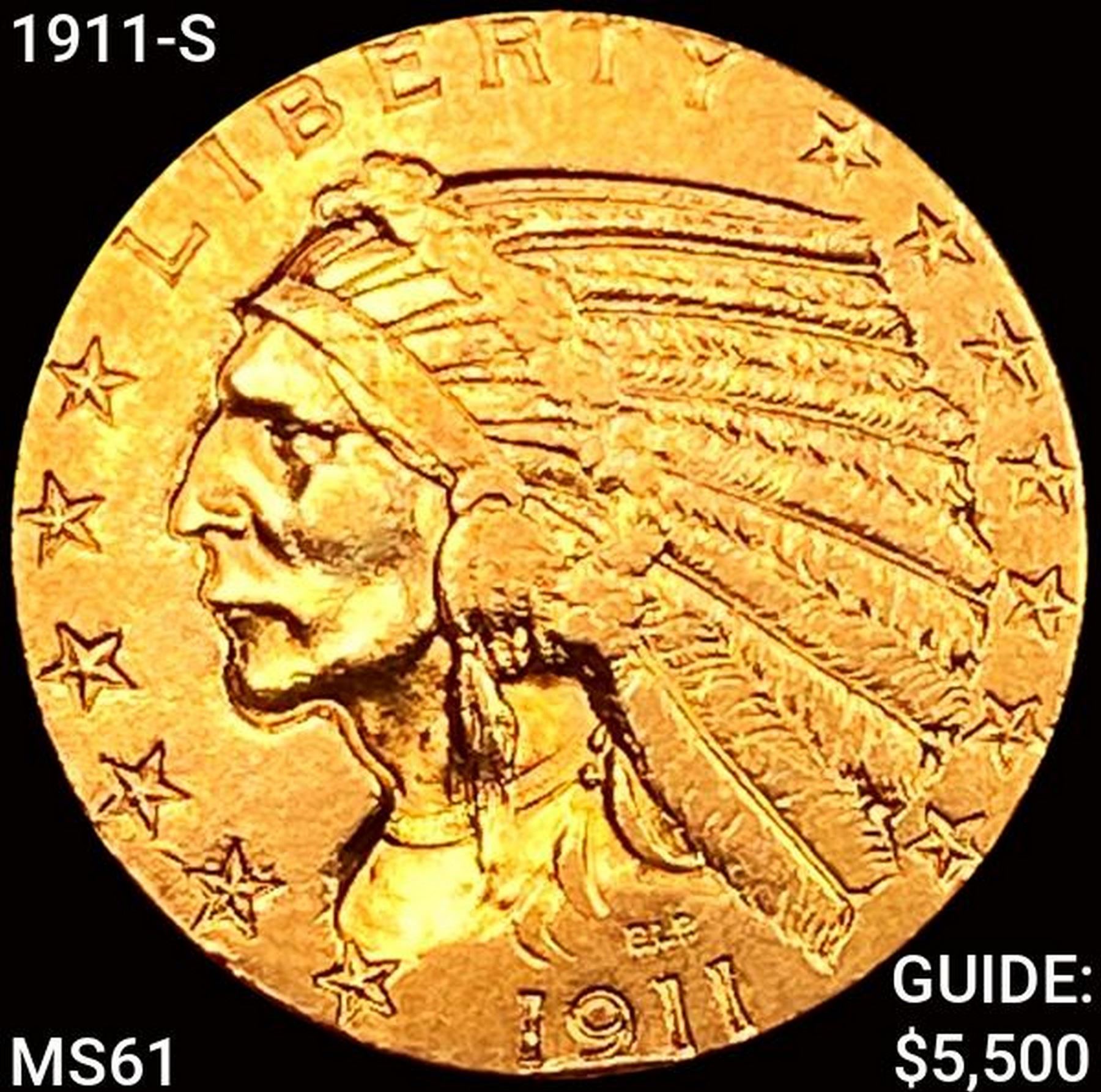 1911-S $5 Gold Half Eagle UNCIRCULATED