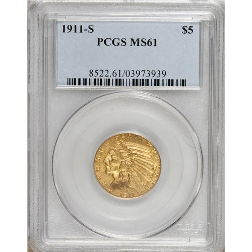 1911-S $5 MS61 PCGS. PCGS Population (70/356). NGC
