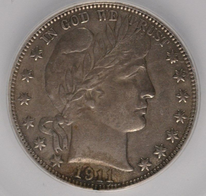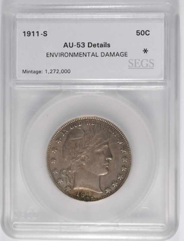 1911-S BARBER HALF DOLLAR, SEGS AU-53 ( environmental damage )