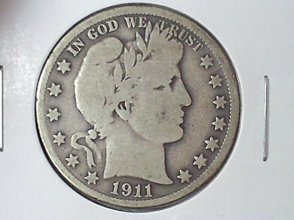 1911-S BARBER HALF DOLLAR (VERY GOOD)