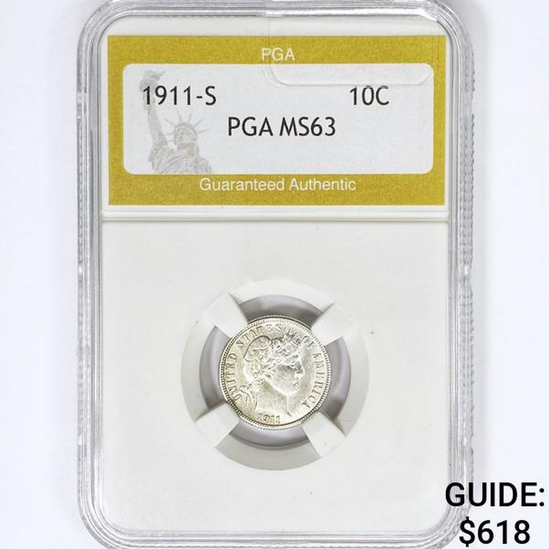 1911-S Barber Dime PGA MS63