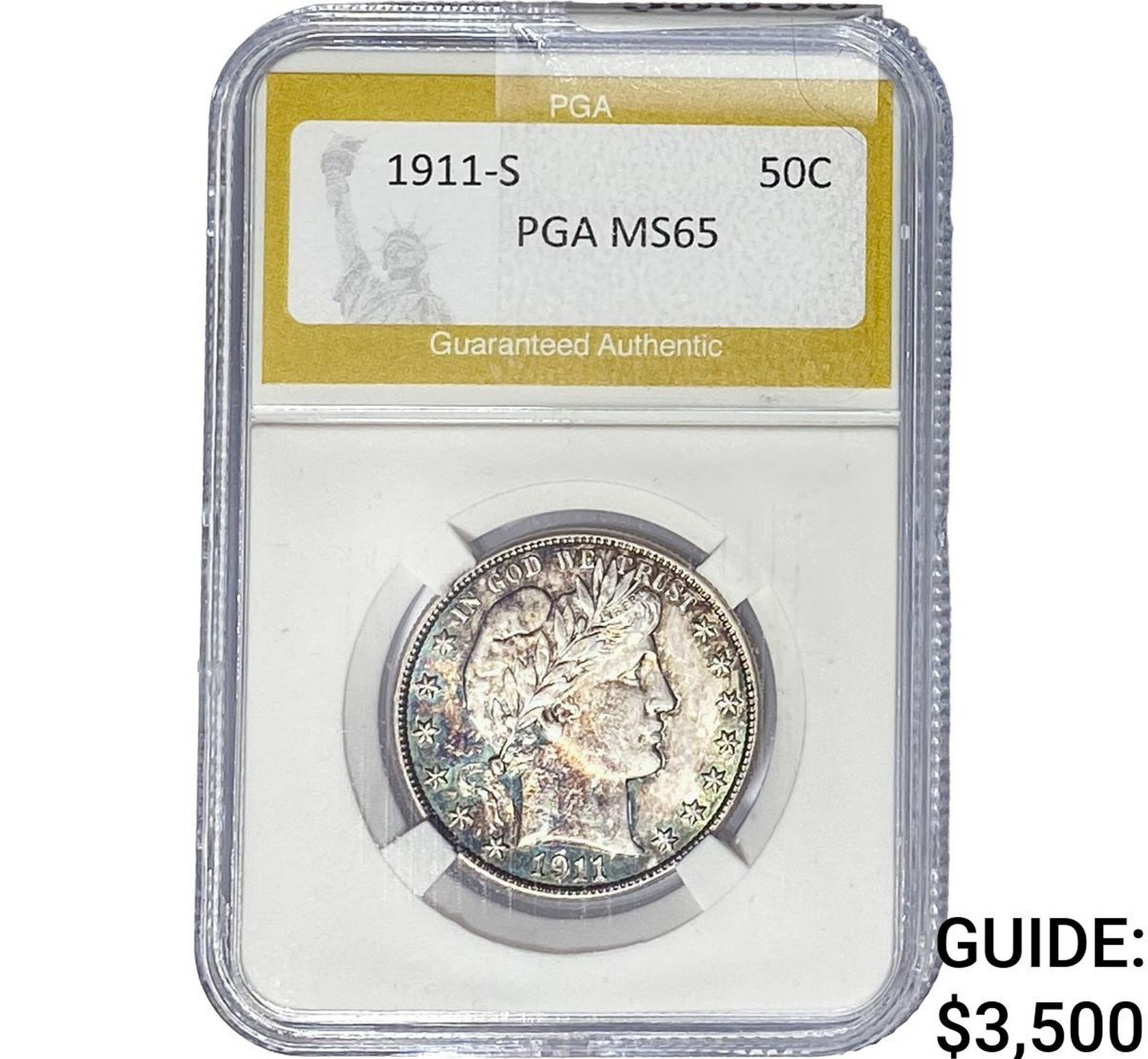 1911-S Barber Half Dollar PGA MS65