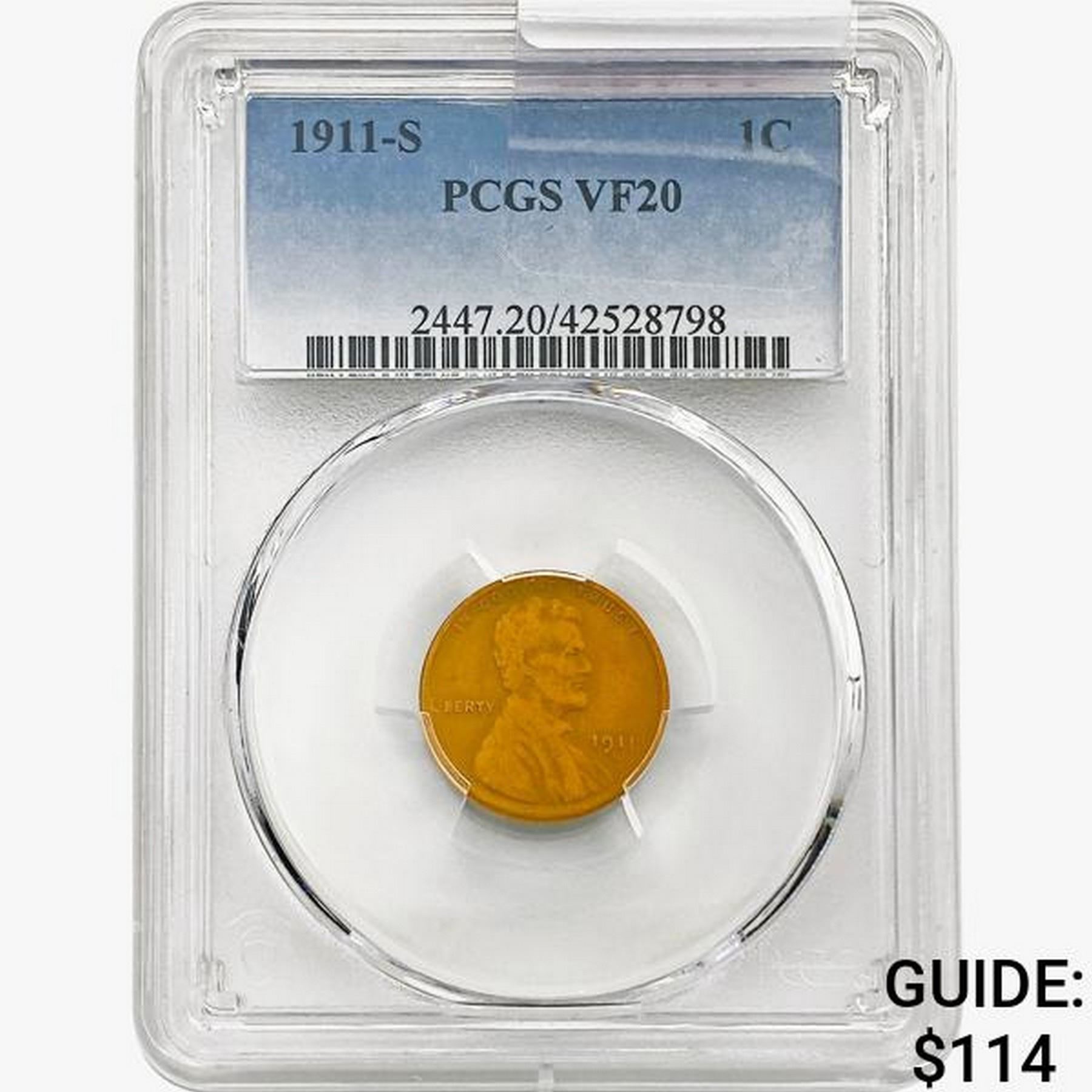 1911-S Wheat Cent PCGS VF20