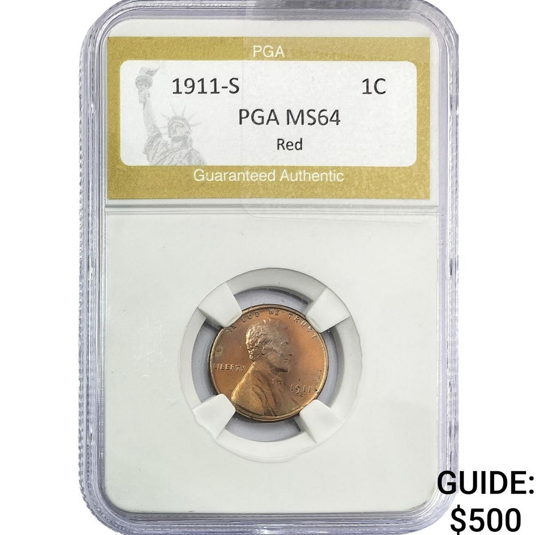 1911-S Wheat Cent PGA MS64 Red
