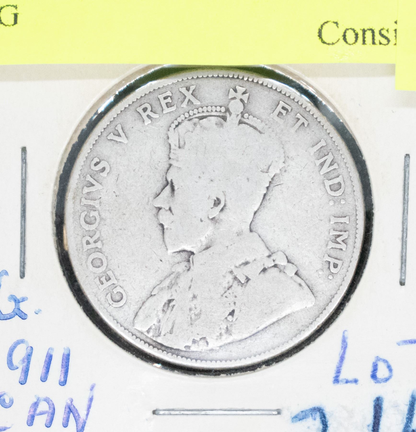 1911 SILVER CANADA 50 CENT COIN VG
