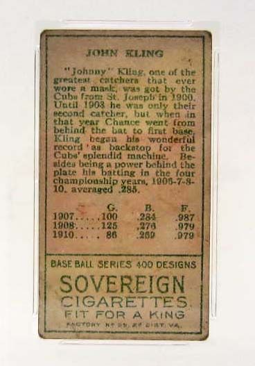 Sovereign Tobacco Series. Professionally graded by the Professional Sports Authenticator company. T205 Gold Border - John G. Kling - PR 1 - 17138941