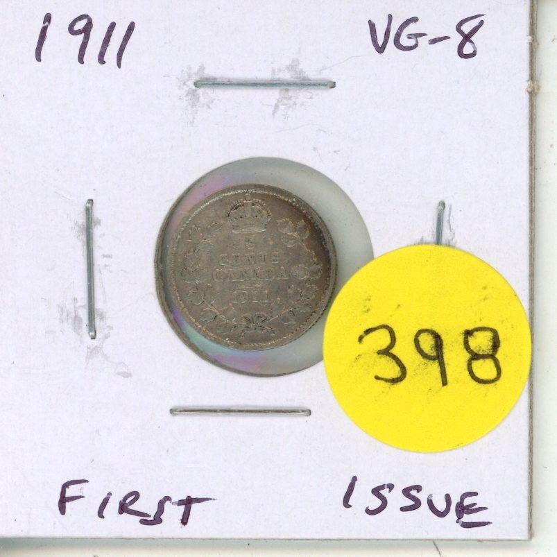 1911 Silver 5 Cents. First issue of George V. VG-8.