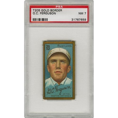 <B>1911 T205 G.C. Ferguson PSA NM 7.</B></I> This well centered example exhibits none to they typical chipping along the edges for this issue and has only slight touched to the metallic gold on three of the corners. Overall a very nice example in strong NM condition. Sweet Caporal back.<BR><BR><b>Shipping:</b> Sportscard (<a target="_blank" href="http://www.heritageauctions.com/common/shipping.php">view shipping information</a>)