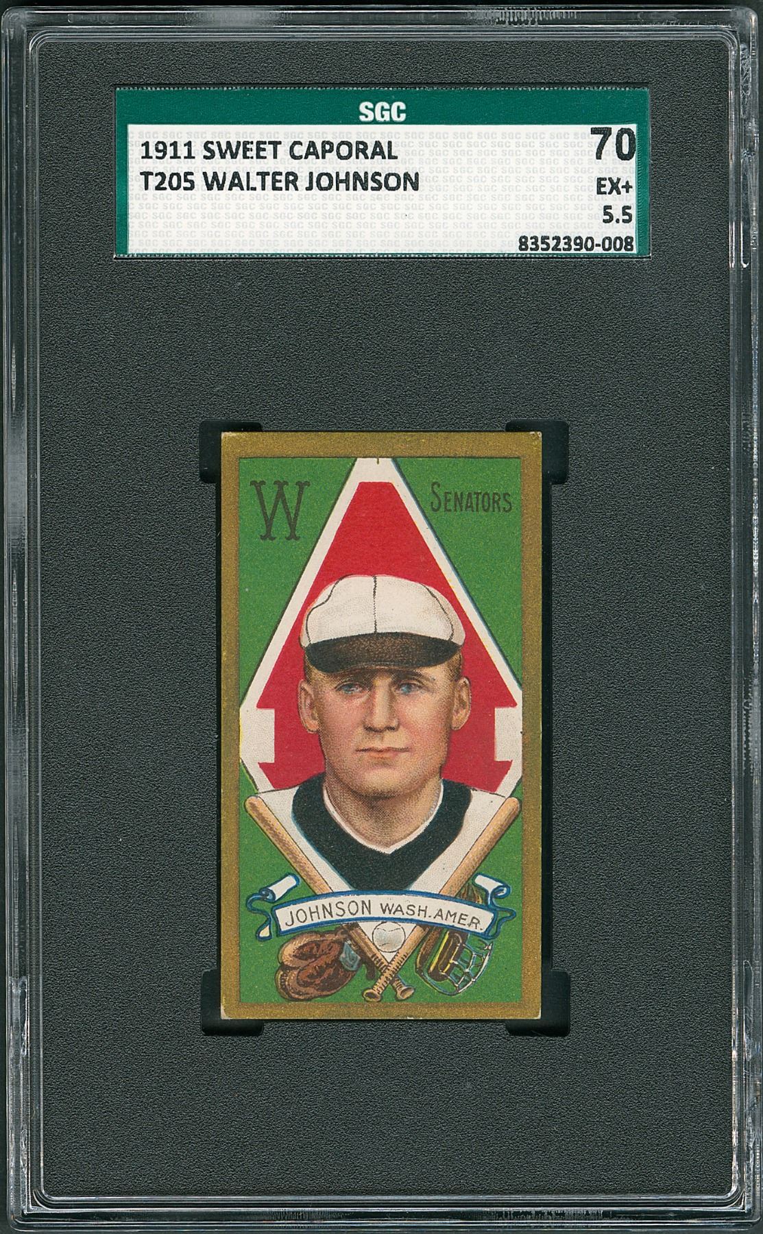 Graded by SGC 70 EX+ 5.5. Deep, rich color with sparkling red and greens which jump off the card. Well centered with light touches to both right corners, and slightly more 'white' showing on both left corners. The reverse is centered to the lower left quadrant, but is cleanly struck and well read.