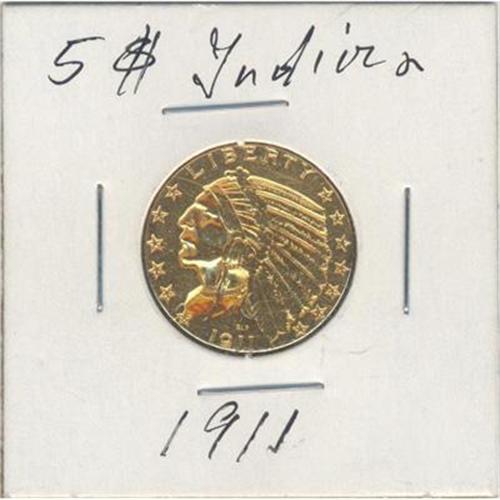 class=rjdescription>1911 US $5 Half-Eagle, Indian Head Gold Coin Nice AU