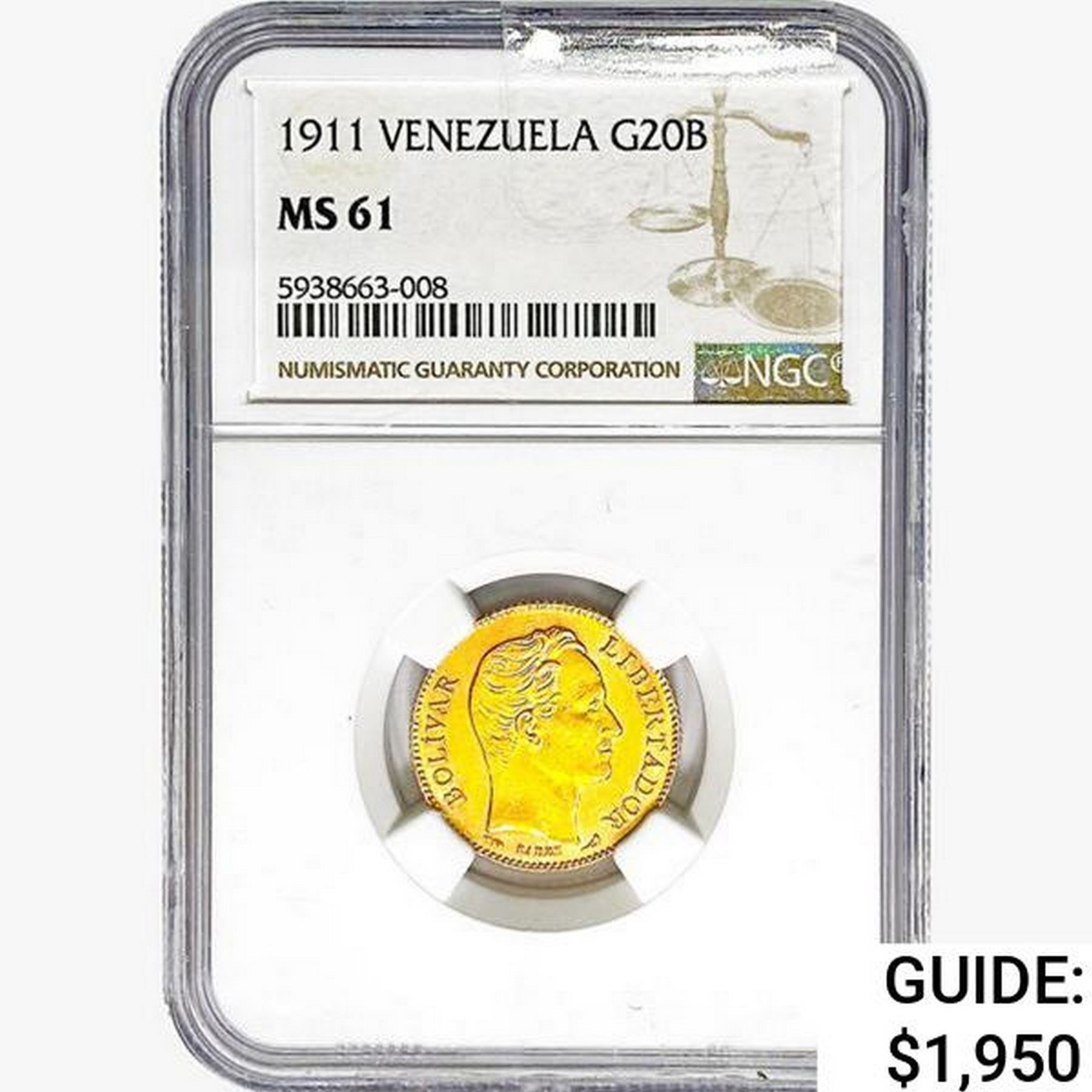 1911 Venezuela .1867oz Gold 20 Bolivares NGC MS61
