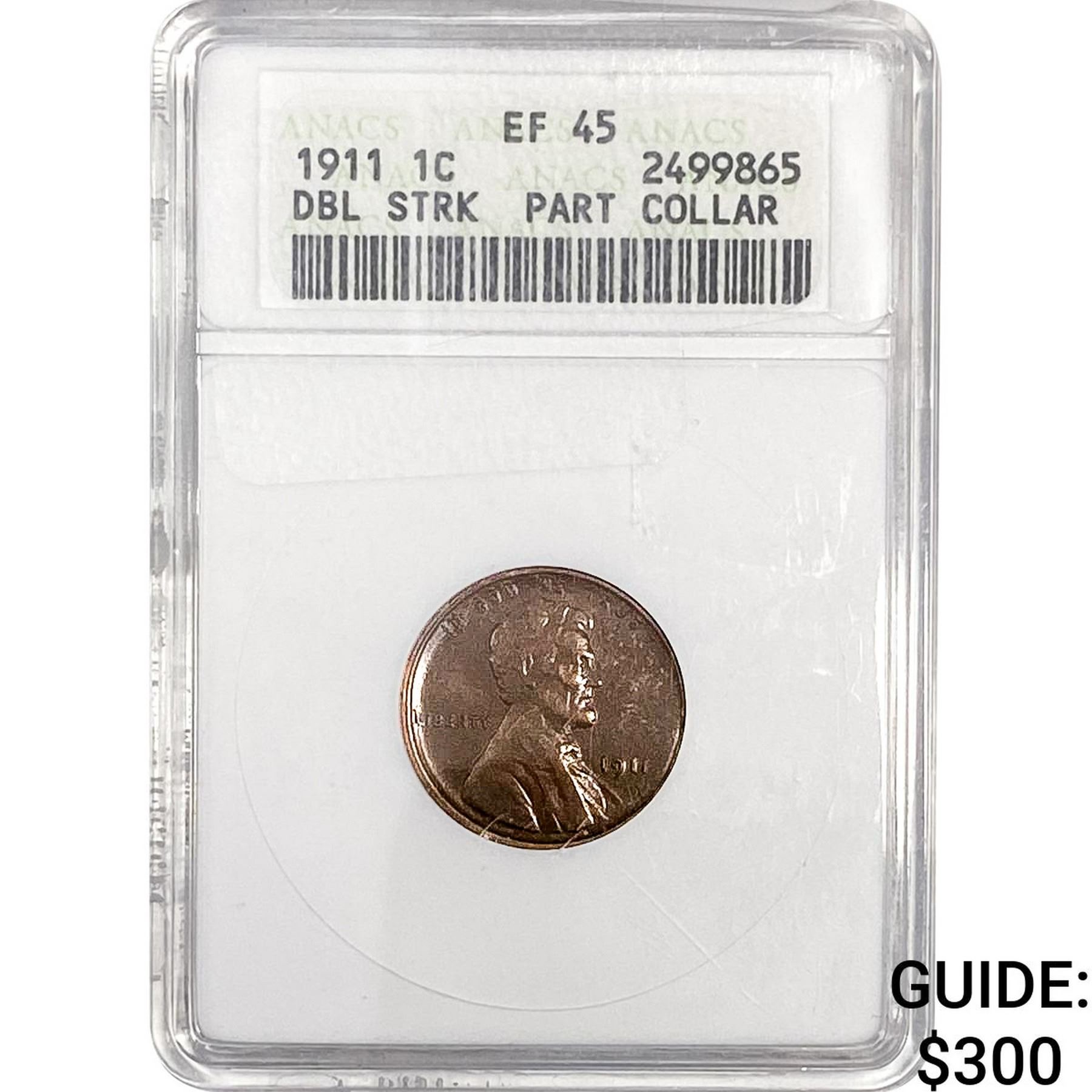 1911 Wheat Cent ANACS EF45 DBL Strk Park Collar