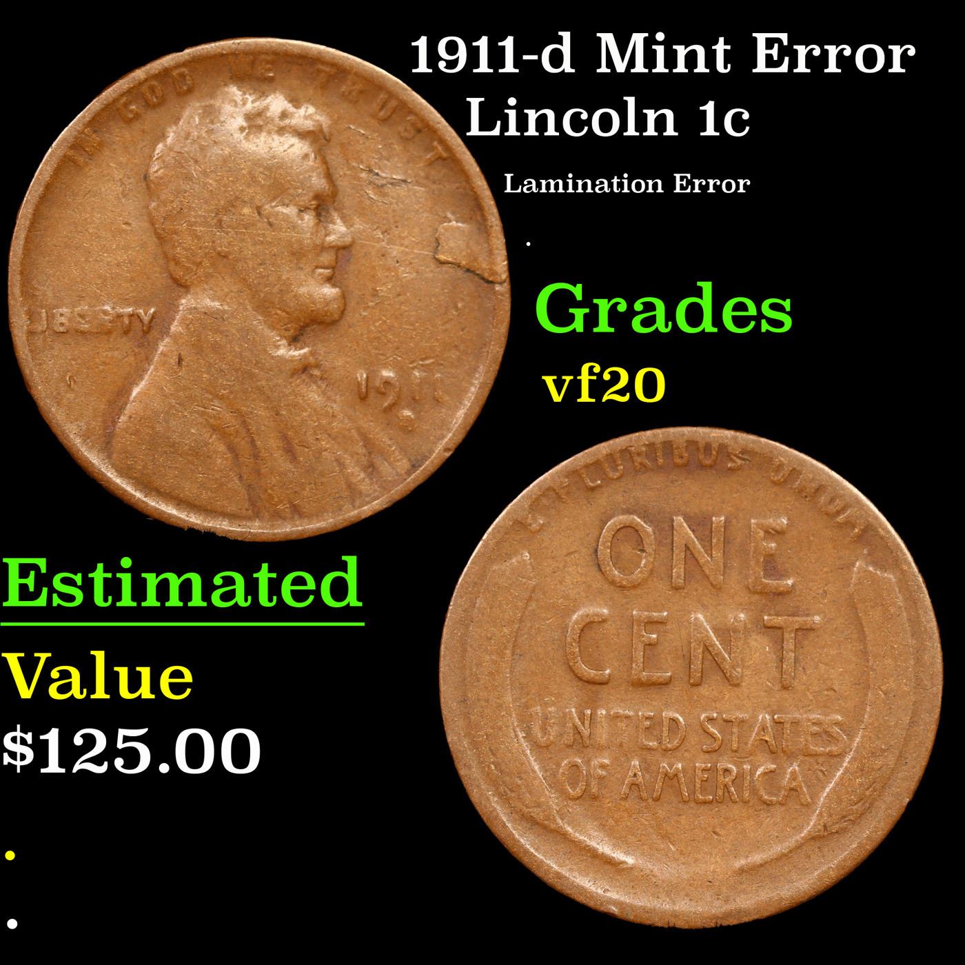 1911-d Lincoln Cent Mint Error 1c Grades vf, very fine