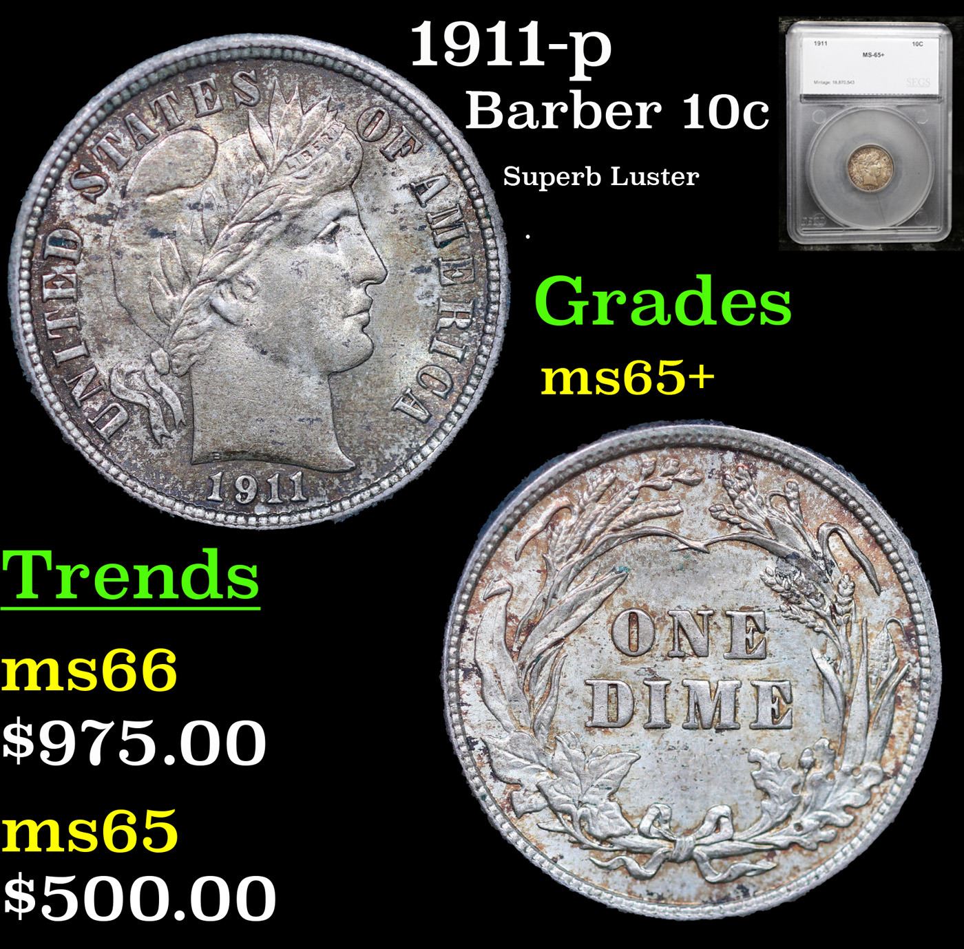 1911-p Barber Dime 10c Graded ms65+ By SEGS.