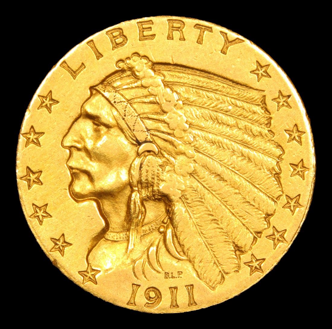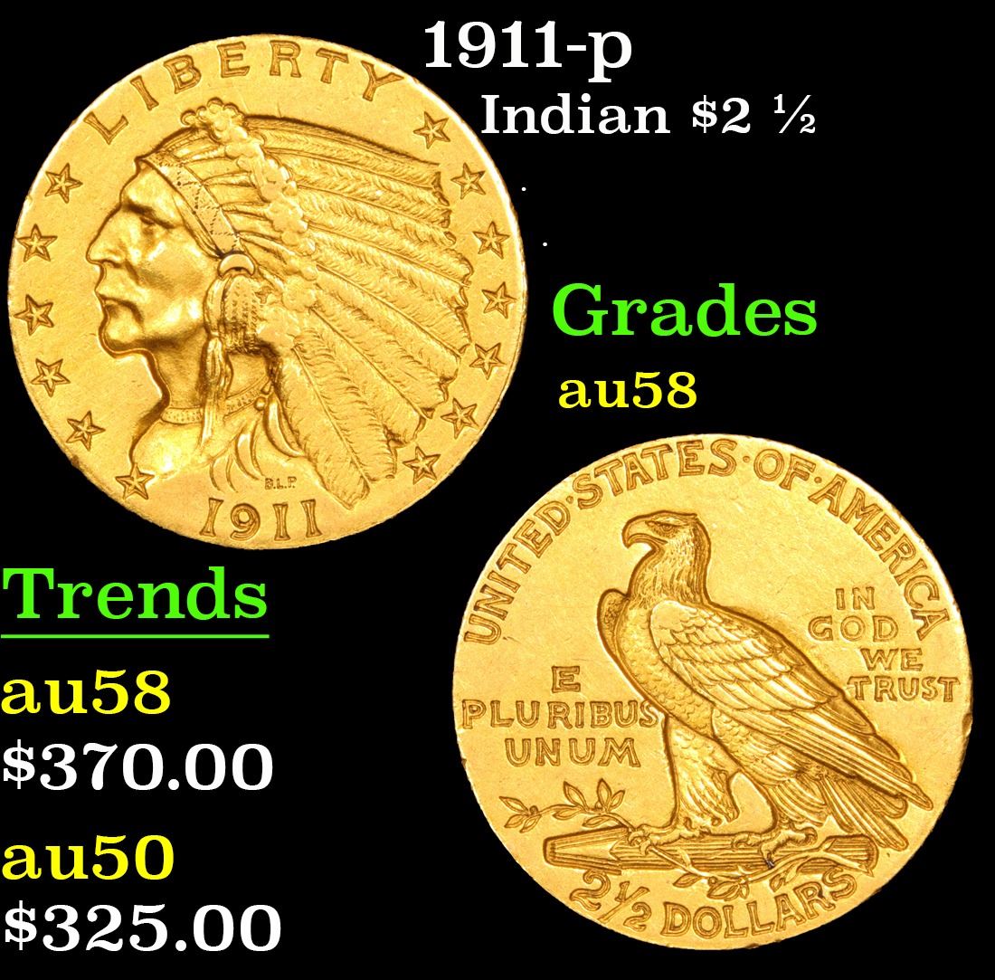 1911-p Gold Indian Quarter Eagle $2 1/2 Grades Choice AU/BU Slider.