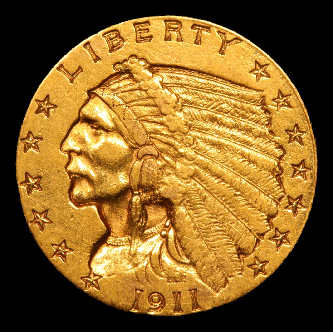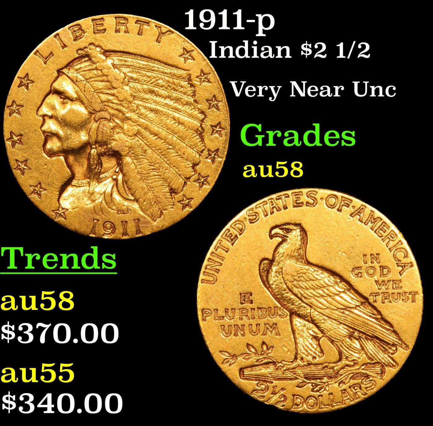 1911-p Gold Indian Quarter Eagle $2 1/2 Grades Choice AU/BU Slider.