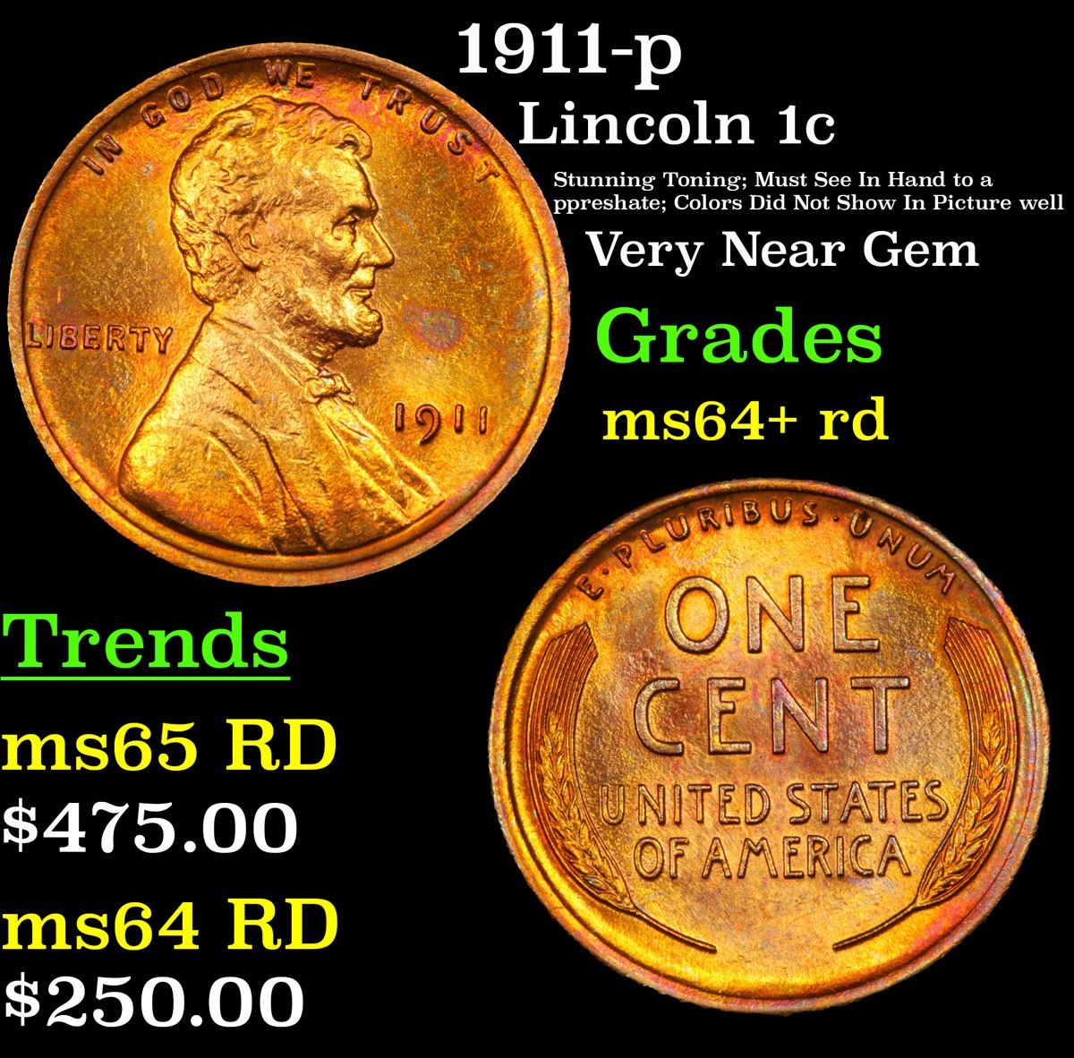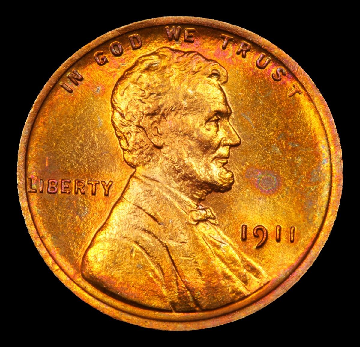 1911-p Lincoln Cent 1c Grades Choice+ Unc RD.