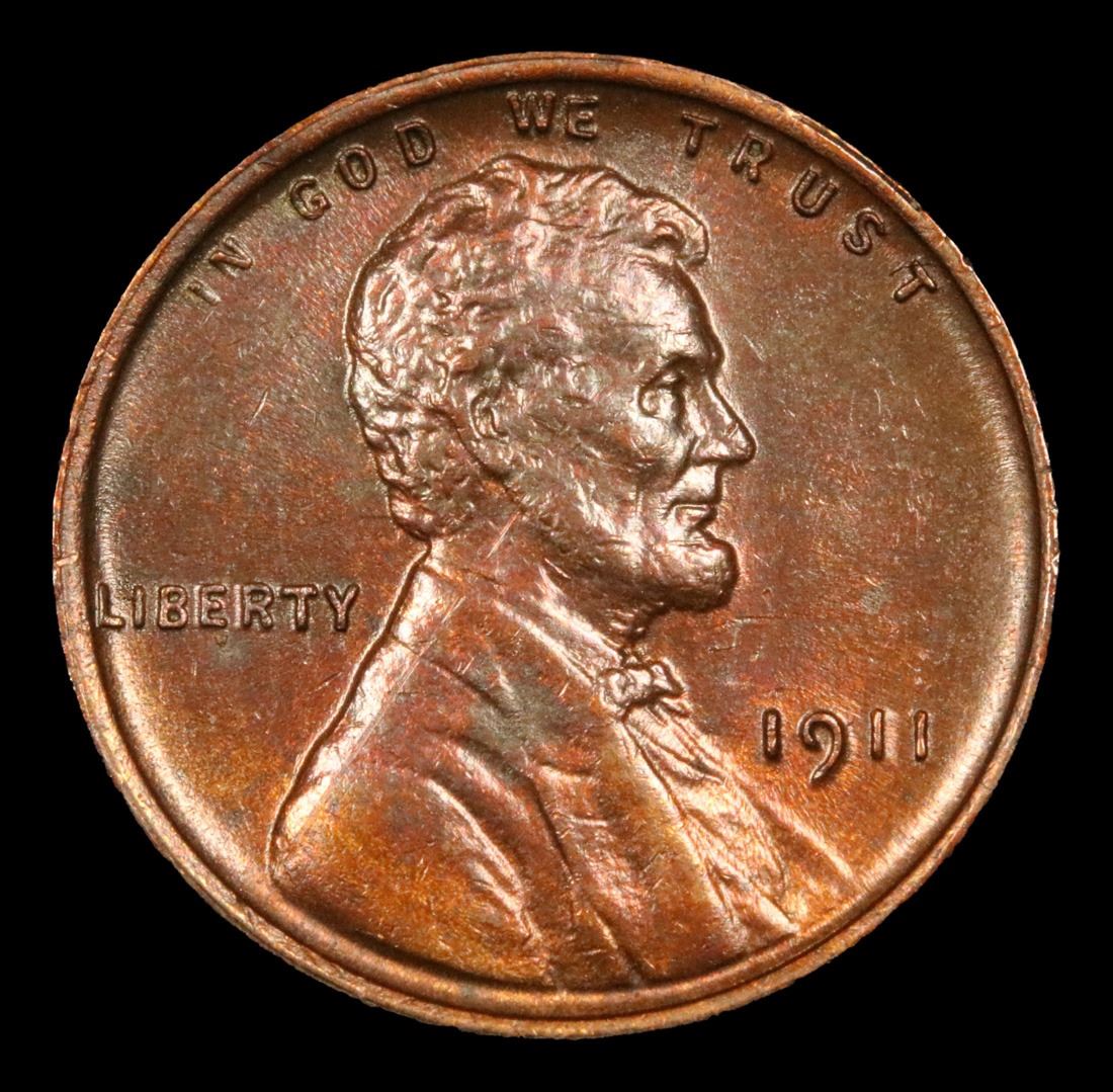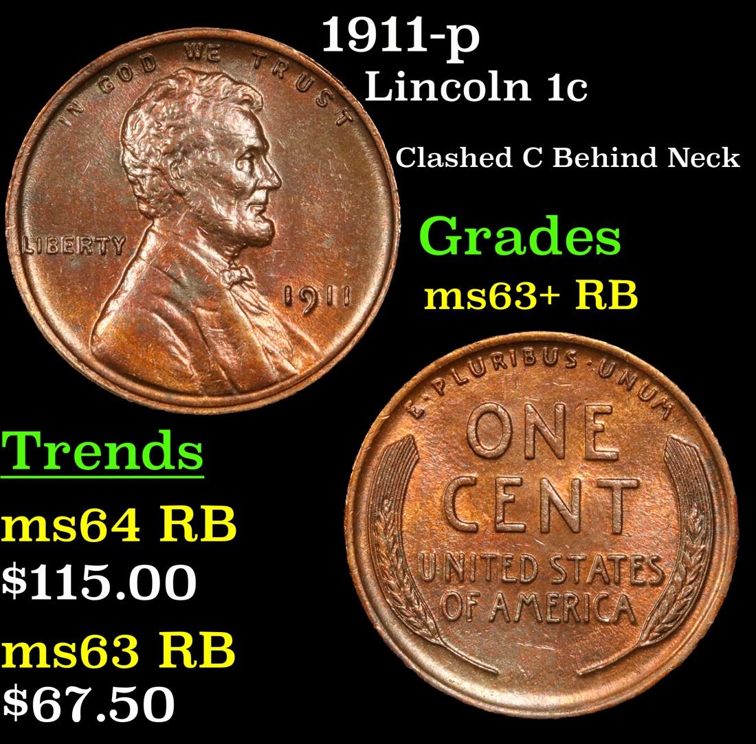 1911-p Clashed C Behind Neck . Lincoln Cent 1c Grades Select+ Unc RB.