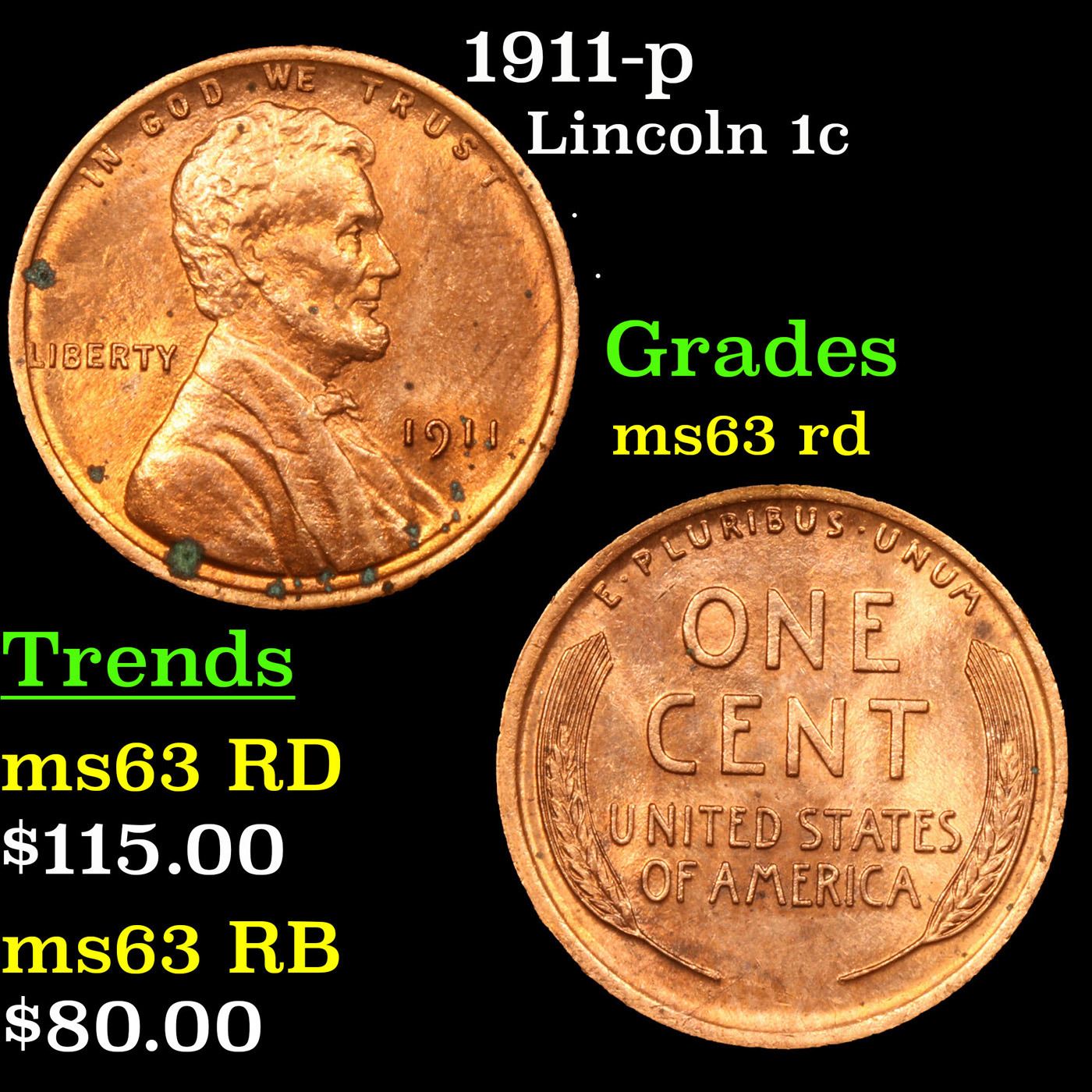 1911-p Lincoln Cent 1c Grades Select Unc RD.