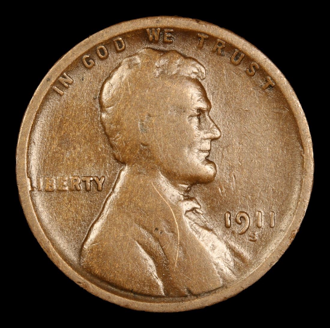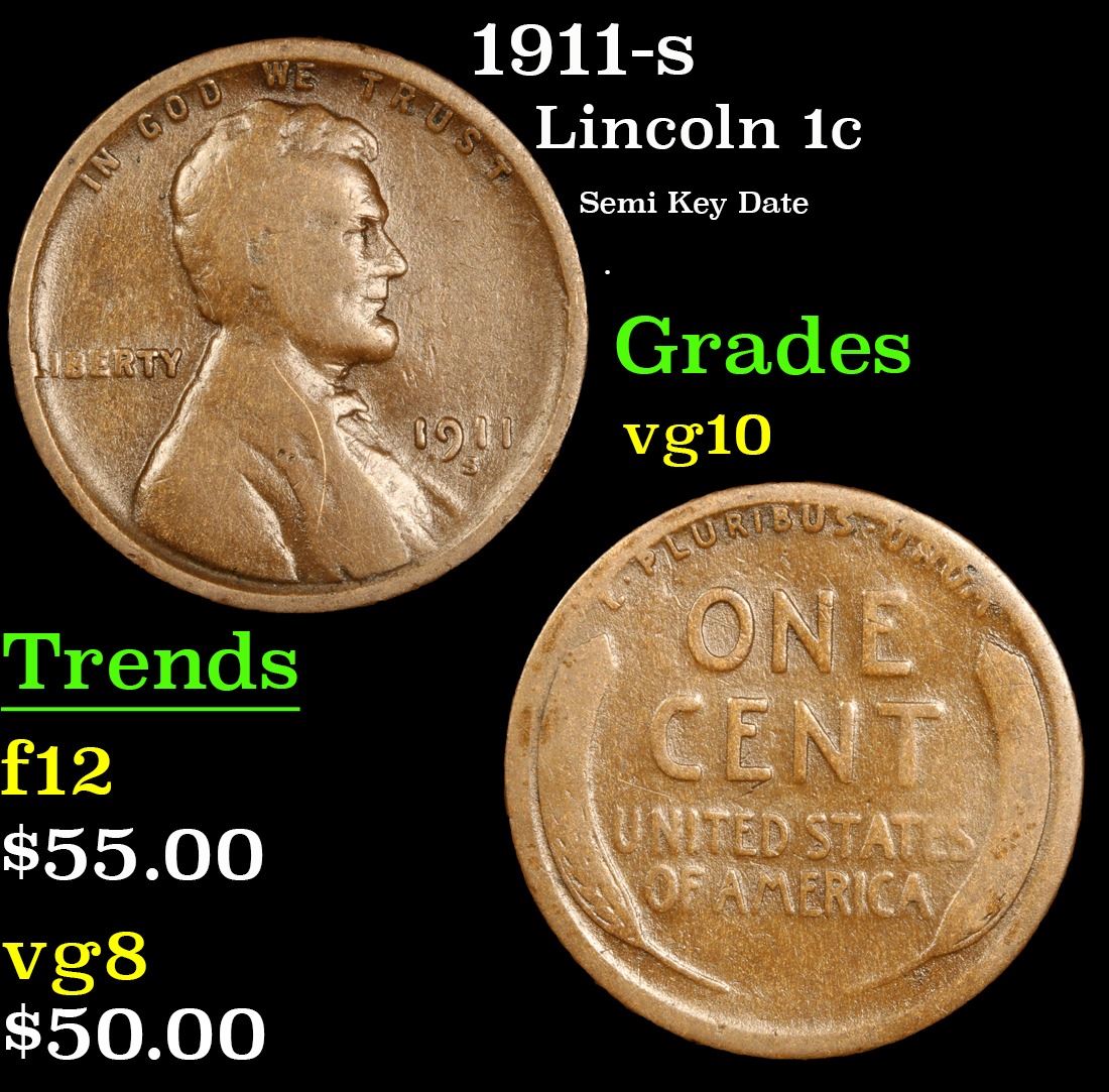 1911-s Semi Key Date . Lincoln Cent 1c Grades vg+. Incredibly scarce date. PCGS estimates that out of an original mintage of over 4 million coins struck, only 900 remain in all grades.