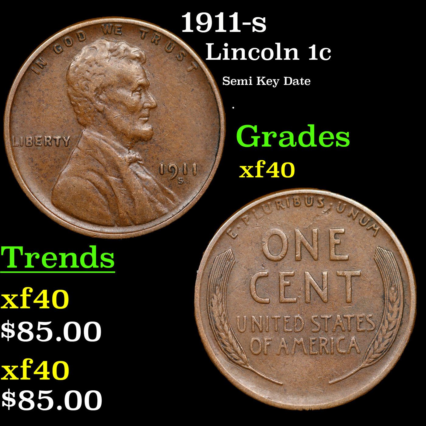 1911-s Lincoln Cent 1c Grades xf. Incredibly scarce date. PCGS estimates that out of an original mintage of over 4 million coins struck, only 900 remain in all grades.