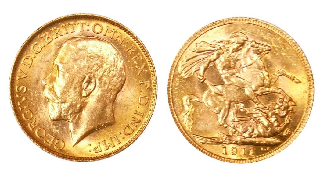 1911c Gold Sov. UNC-60, lots of lustre.