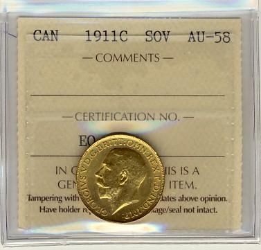 1911c Gold Sovereign ICCS AU58. Good lustre.
