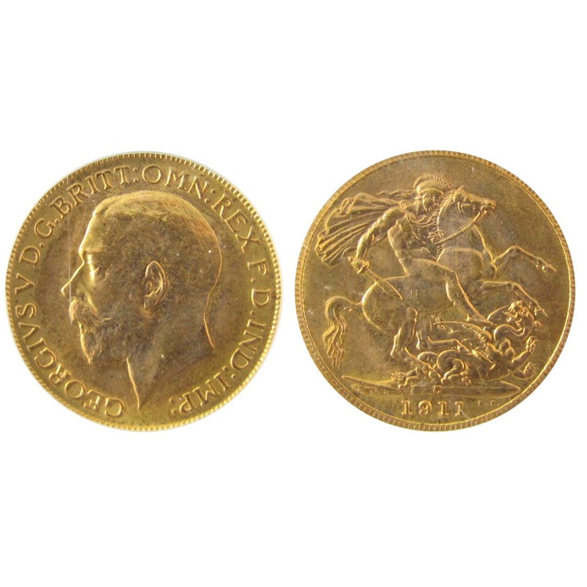 1911c Gold Sovereign PCGS MS65. Gem full lustre.