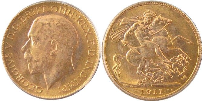 1911c Gold Sovereign PCGS MS65. Gem lustre. A superb example.