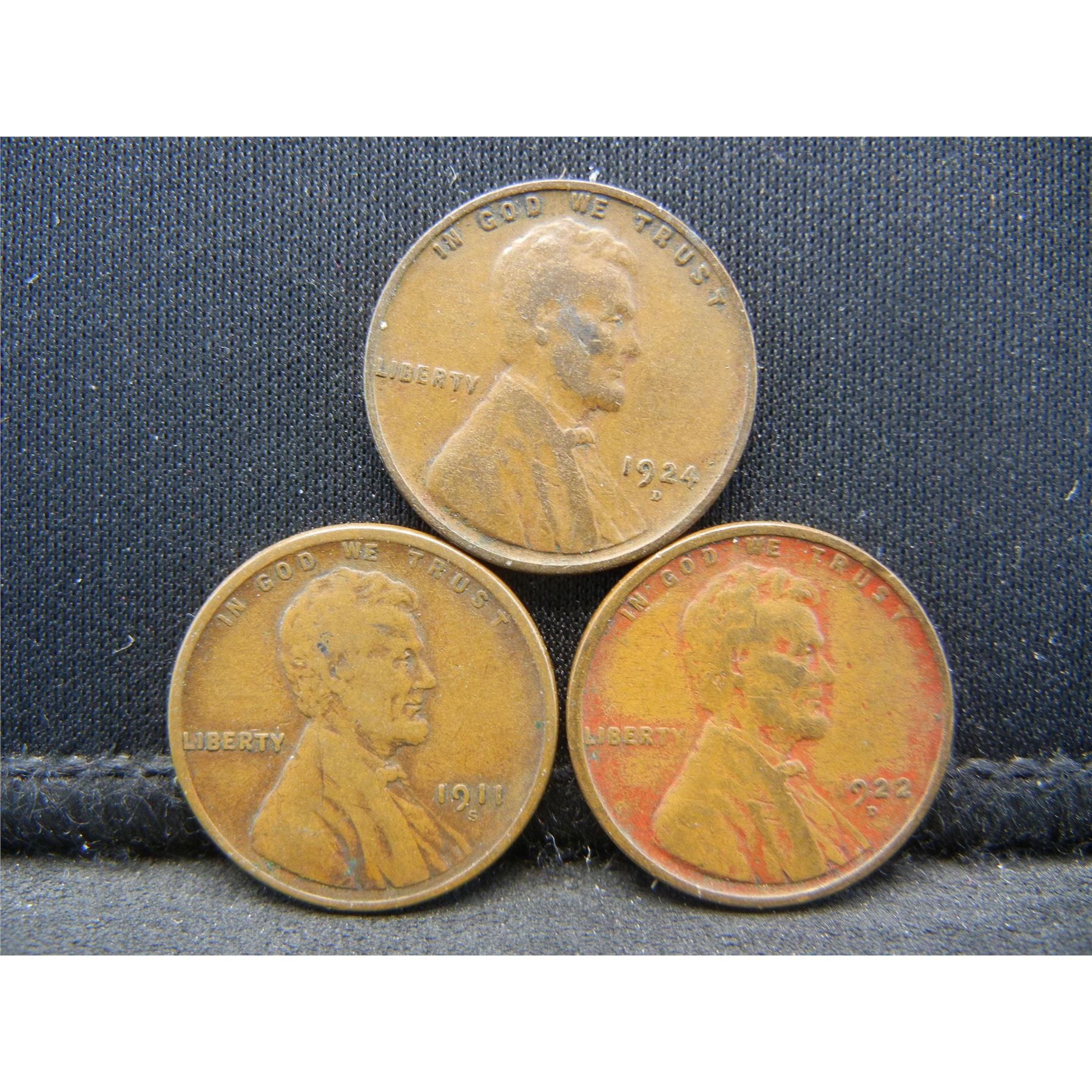 1911s,22d,24d, Lincoln Cents Ave Circ Key Date