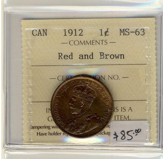 1912 1¢ ICCS MS63 RB
