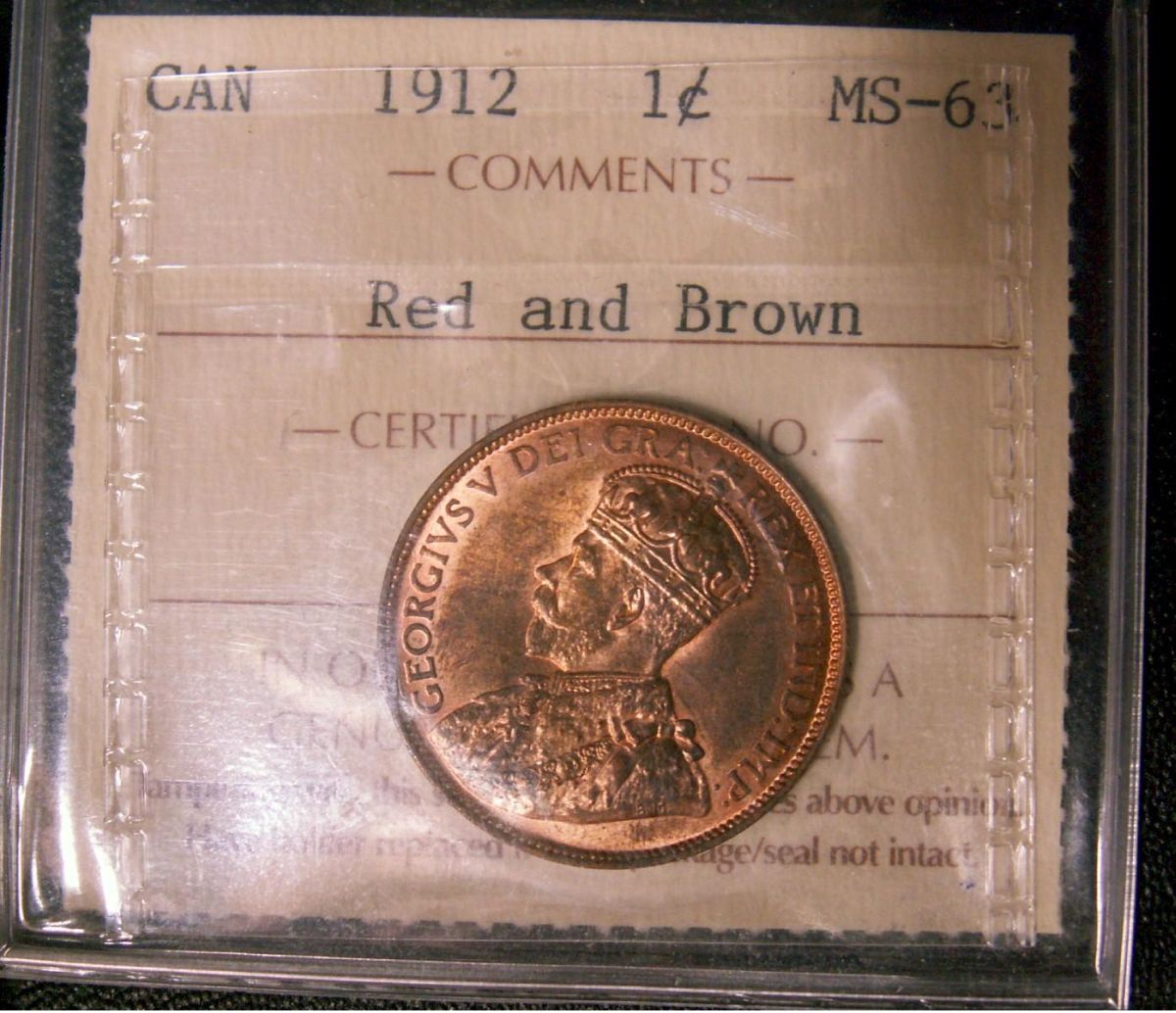 1912 1¢ ICCS MS63RB. A nice example with nice lustre.