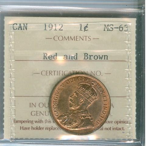 1912 1¢ ICCS MS63RB. Nice lustrous example.